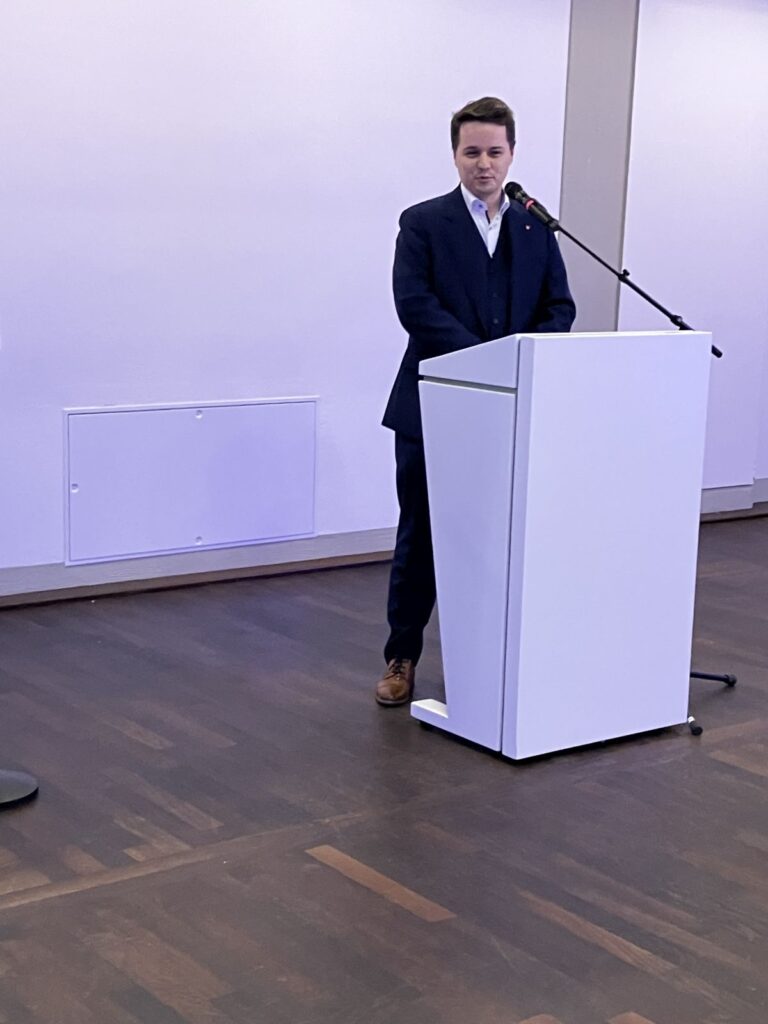 Als Vertreter des erkrankten Bürgermeisters Lukrafka zitierte sein Vertreter der neugewählte erste stellvertretende Bürgermeister Nico Schmidt den Appell der vor kurzem verstorbene Jüdin Margot Friedländer „Seid Menschen“.