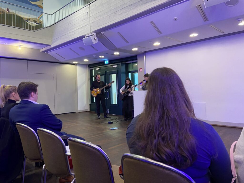 Dankenswerterweise trug die Schülerband der Gesamtschule Velbert zu einer würdigen Veranstaltung bei. Einige Schülerinnen der Schule trugen Gedanken zum Schicksal der Familie Aaron vor, die Unterstützung durch den örtlichen Polizeichef erhielten und somit vor den Gräueltaten verschont blieben.